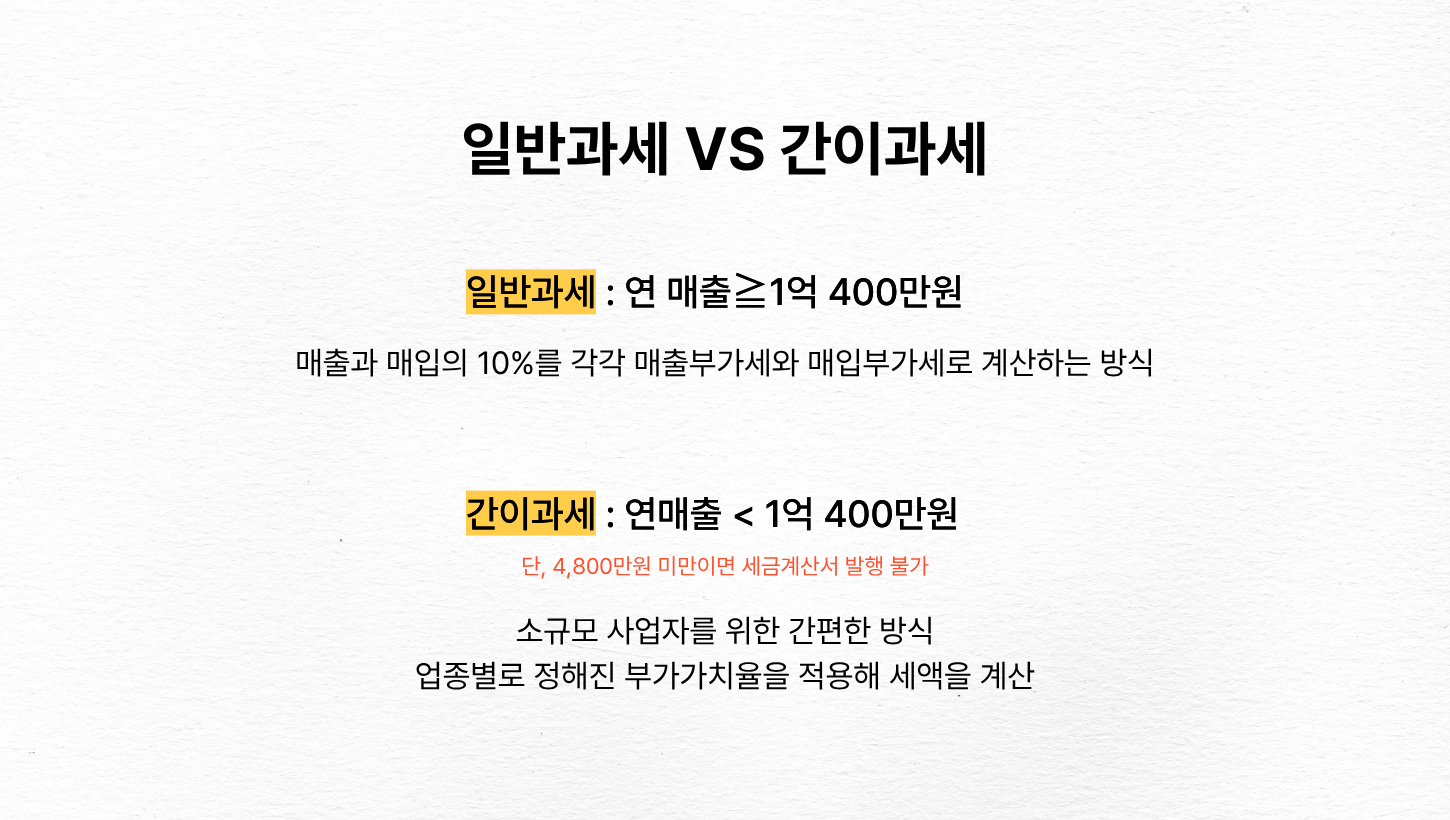 - 세금계산서 발행 가능 : 4,800만원 이상 ~ 1억 400만원 미만