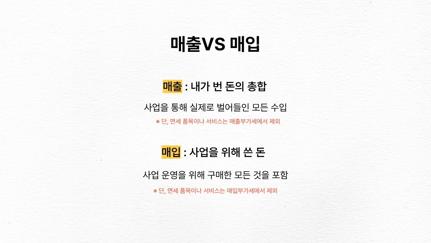 매출은 사업을 통해 실제로 벌어들인 모든 수입을 의미합니다. 제품을 팔았다면 제품 판매 수익, 서비스를 제공했다면 서비스 대금이 모두 매출에 포함됩니다. 간단히 말해 내가 받은 돈 전부라고 생각하면 됩니다. 이 매출액의 10%가 보통 매출부가세가 됩니다. 단, 면세 품목이나 서비스는 매출부가세에서 제외되니 주의하세요.