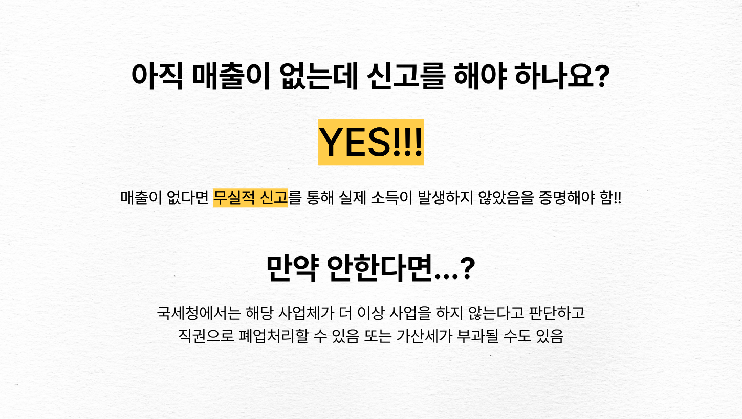 따라서 매출이 없다면 무실적 신고를 통해 실제 소득이 발생하지 않았음을 증명해야 합니다.